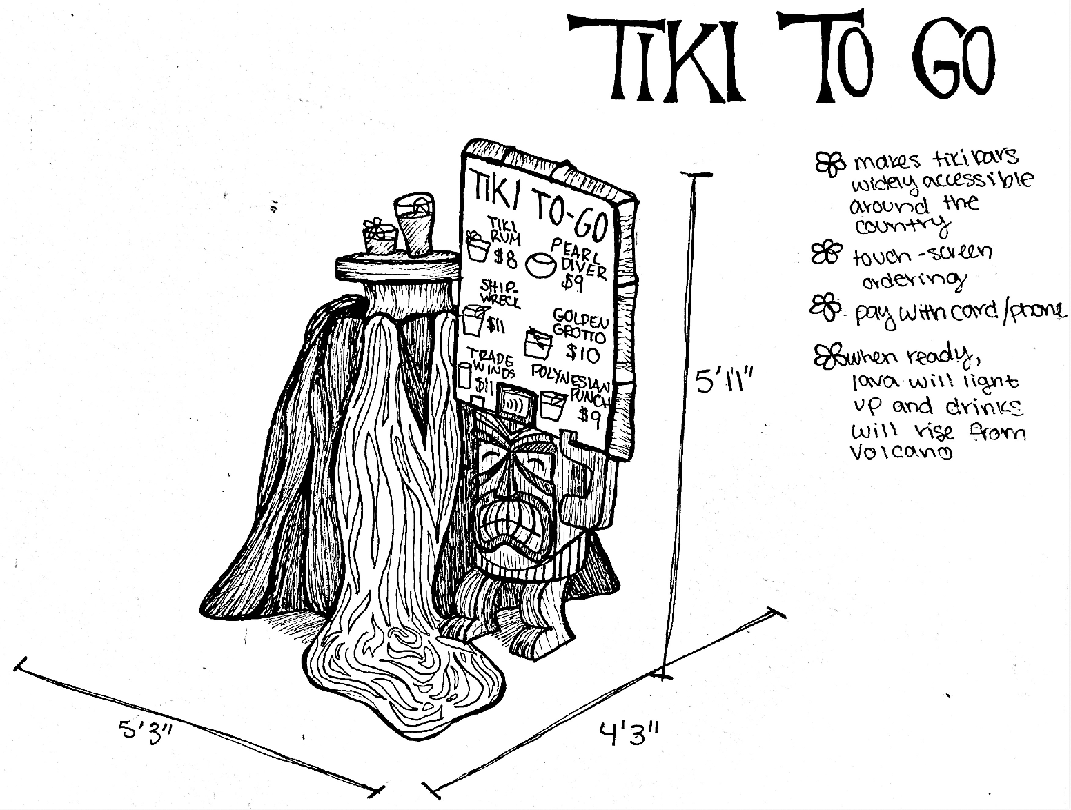 Tiki-To-Go Kiosk Kiosk Concept for a fantastical kiosk that can make tropical drinks for an island experience anywhere.